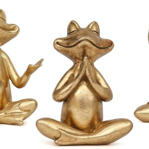 Suoedd Gold Frog Figurines Yoga Decor 3.7In Set of 3 –Frog Yoga Statues for Home Office Bookshelf Shelves Sculptures