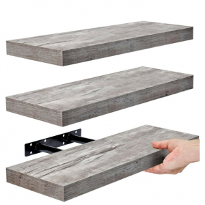 Sorbus Wall Mount Floating Shelf, Grey Wood – Rustic Farmhouse Décor 16.25″ L x 5.50″ W x 1.5″ H (3-Shelves)