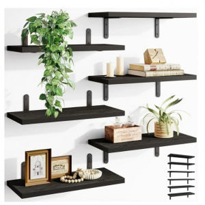 Set of 6 Kitchen Wall Shelf Rustic Wood Floating, 16 Inch Black