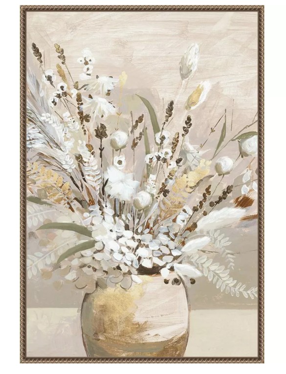- FRAME DETAILS: The canvas is framed in the Sylvie Beaded Bronze frame, which is a vintage float frame featuring a traditionally beaded ornate design with light bronze coloring, subtle antiquing and dramatic depth. The frame measures 1 in. wide and stands 2 in. off the wall.