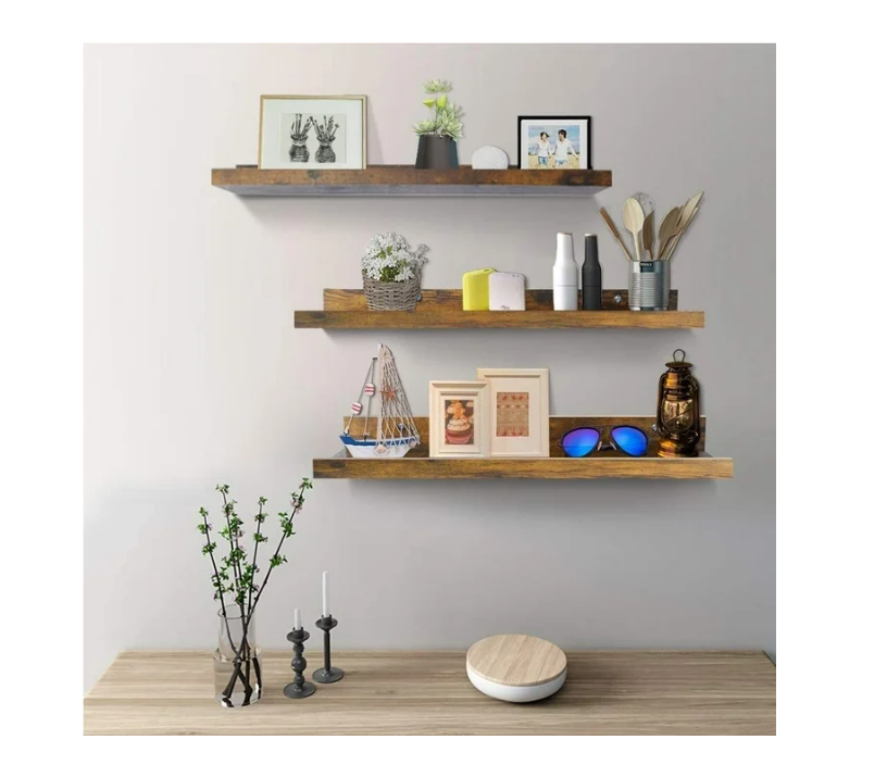 - MAXIMIZE SPACE – Our 3-Pack of Rustic Floating Wall Shelves provides ample storage for decor, books, and essentials in any room in your home or office. Elevate your space with our stylish and functional shelves.