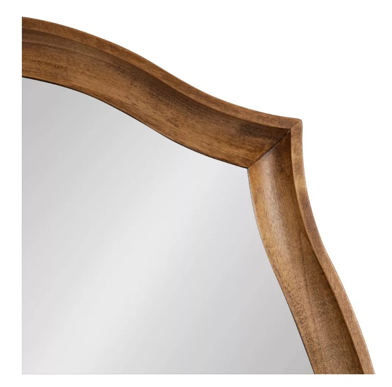 This mirror is perfect for unleashing your inner decorator and transforming your space with a modern transitional look. The Hatherleigh was designed with robust natural wood, providing high-quality durability, natural woodgrain, and a charming, rustic brown finish. The classic oval shape is perfect for introducing soft curvature and scalloped points. Its overall dimensions are 24 inches wide by 34 inches tall with a depth of 1.5 inches, creating a commanding statement piece that functions well in various spaces. Use the Hatherleigh mirror to bring vibrancy to your space, using the wide surface area to increase the spread of light and make your room appear brighter. It looks great all throughout your home or office, pairing well with your mantel, console table, sofa, bed, and much more. If you’re looking to start renovating your bathroom with a transitional vibe, the Hatherleigh works well as a unique bathroom mirror for a single or double vanity. Hang this mirror in a matter of minutes with the metal D-ring hangers that are attached to the sturdy back.