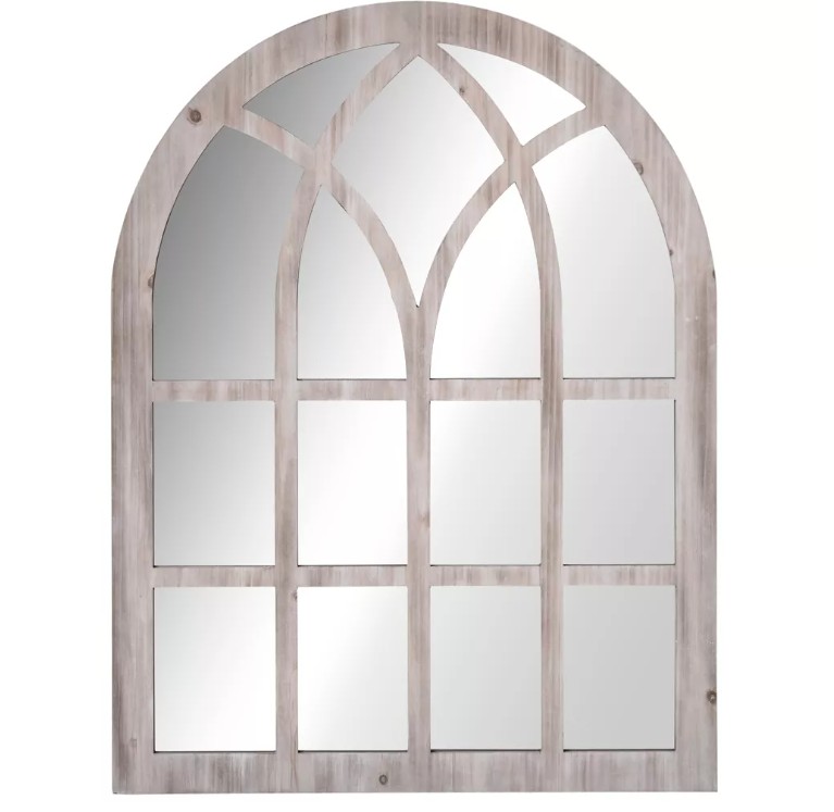 Beautiful Décor Piece: With an arched trellis windowpane frame, and a distressed natural wood finish, this arched mirror decorates your wall while making your home brighter and more spacious by reflecting the light.
