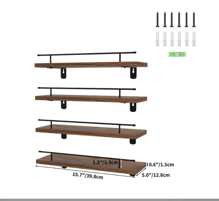 • Easy Installation: The hanging shelves are simple and easy to install and include the necessary hardware, level and instructions.