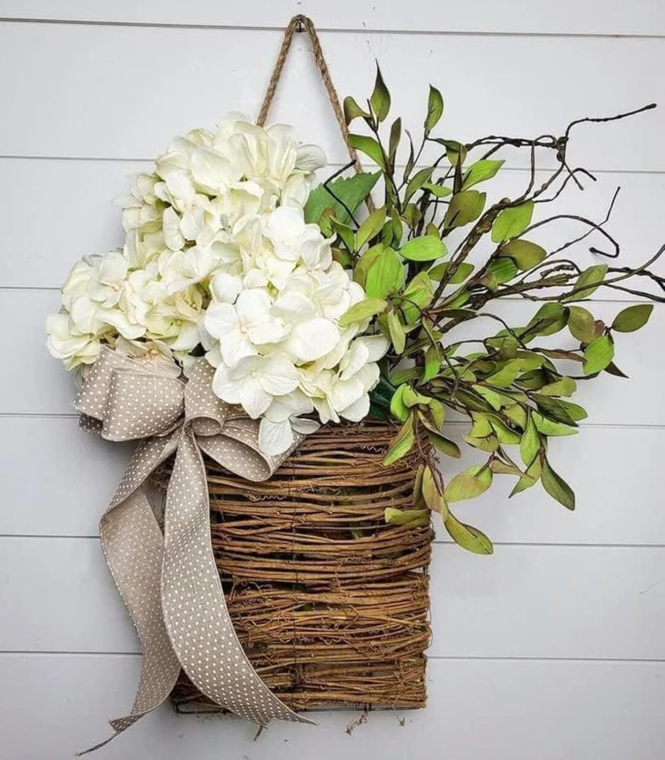- 💐✨Basket Style Wreath – Bring a touch of rustic sophistication to your home with our Cream Hydrangea Door Hanger Basket Wreath. Featuring a vintage-inspired design with wildflowers, this wreath is perfect for spring and summer decor. Ideal for weddings, parties, or everyday use, it effortlessly enhances your porch, wall, or indoor spaces.