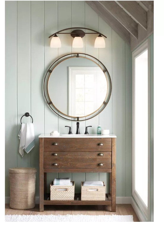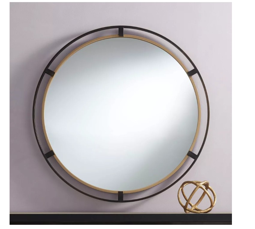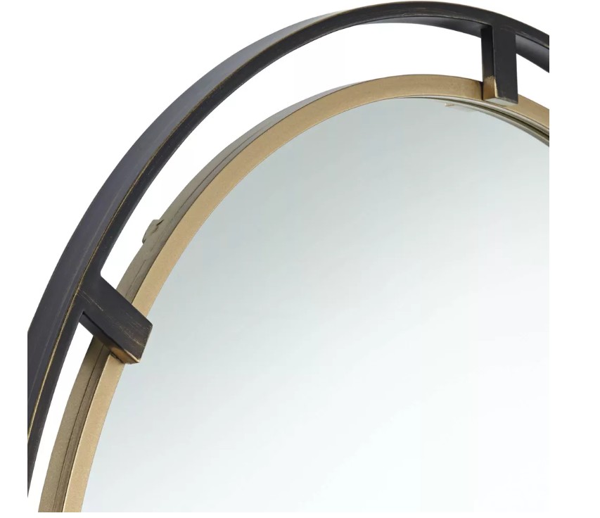 Complementary finishes ensure a dynamic look for this round wall mirror from Uttermost. Designed for subtle, minimal style, this mirror features round glass with a metal frame. The inner ring of the frame features an antiqued gold finish that brings warmth. The outer ring offers a distressed rustic bronze finish, rich in inviting appeal.