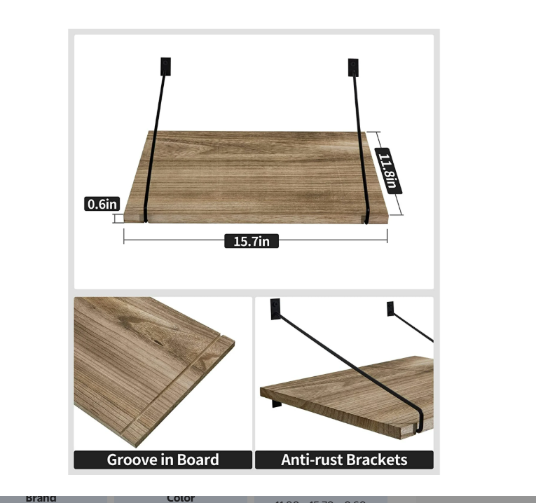 - 【 Firmly on Wall】Triangular metal brackets and 4 cm screws can nail the deep wall shalf firmly on the wall. The grooves fix boards on brackets. Triangular structure offers more stability for the deep hanging shelf.