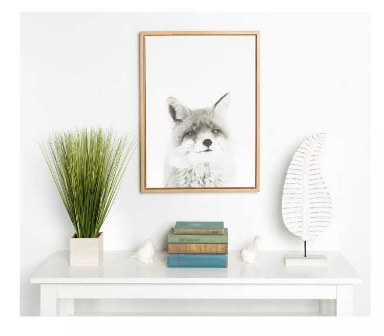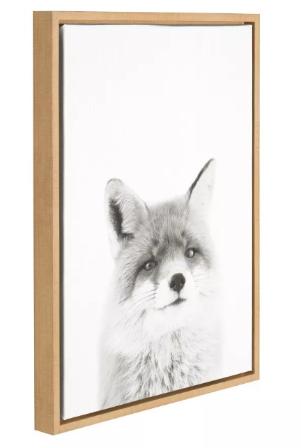 Display your love of animals in your home with this curious fox portrait. Printed and framed in the USA in Waunakee, Wisconsin, this framed floating canvas art will be a stunning wall art piece to look at every day in your living room, bedroom, kid’s room, or any room in the home. Printed on gallery wrapped canvas and framed with a natural woodgrain high quality polystyrene frame, this animal wall art has two sawtooth hangers already attached to the black inset back for easy wall display. The outer dimensions are 24 inches tall by 18 inches wide by 1.6 inches deep. <•p>