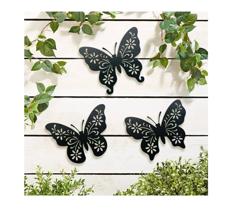 - Set of Three: Includes three metal butterfly wall art pieces, each measuring 9.5 x 7.5 inches.