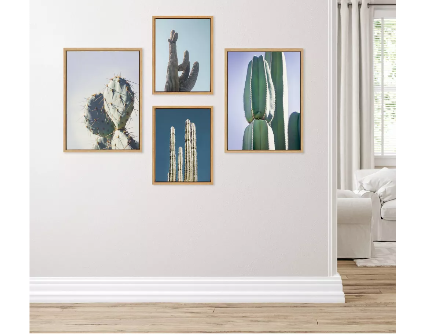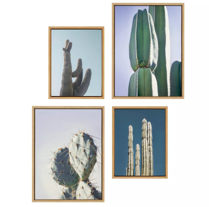 (Set of 4) Sylvie Cactus Sky Pastel Cactus Stand Tall Cactus and Arizona Cactus WallArts