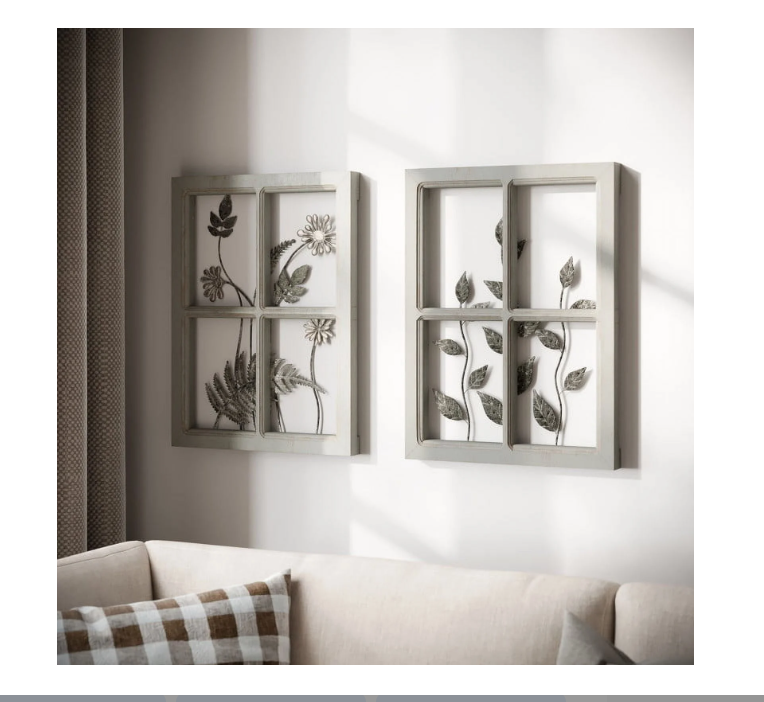 • Farmhouse Charm: Square window pane design in a subtle gray.