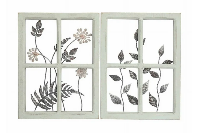 • Rustic Detailing: Metal plants in a distressed rustic shade.