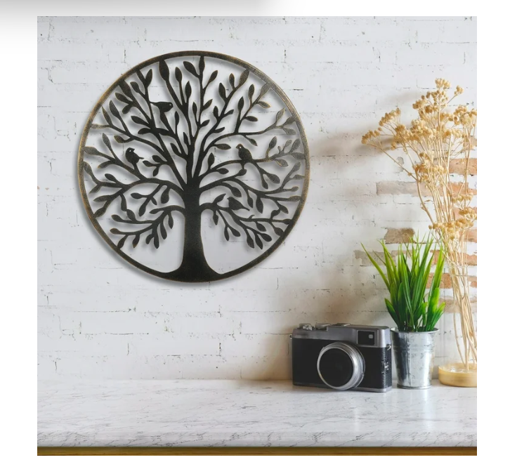 Round Tree of Life: Make good use of the space and create a warm home-style space to display your photo, and books while holding collectibles, small plants, trophies, vase Legos, and more. Style your wall like a professional magazine shoot.