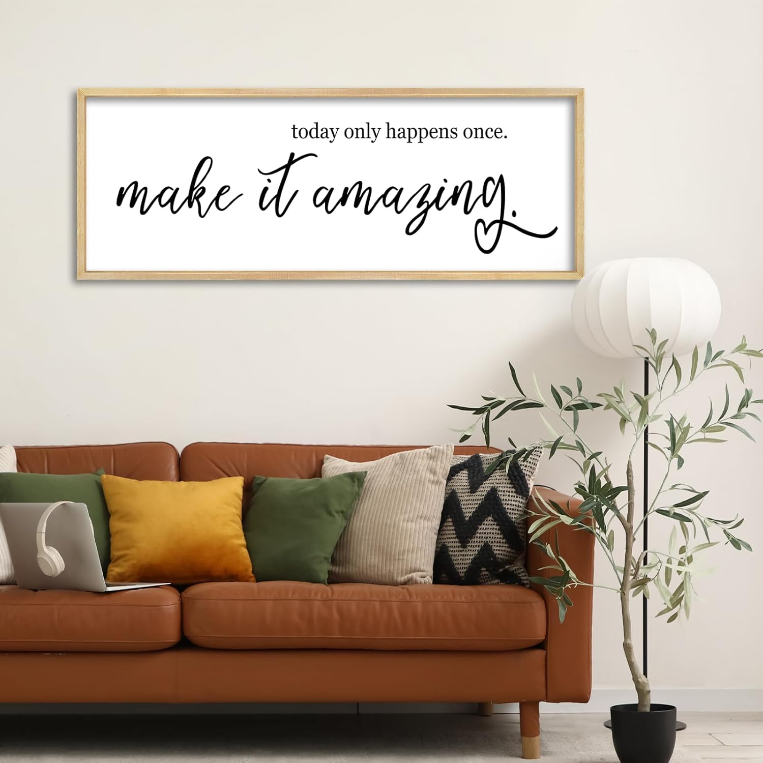 - Rustic-Modern Design: 32×12×1 inch single panel with natural wood frame (visible grain) and black/white motivational quote.